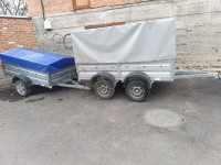 Прицеп заводской 2,2*1,3 борта 47 см. , тент 29 см. от борта в козырьке, рессоры 4- х листовые, усиленная версия, цена без колес