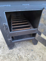 Буржуйка малая 3 мм Дровяная отопительная буржуйка толщиной 3 мм. Размер: 41/41/31 см. Покрашена термостойкой краской Certa 1100°. Есть боковые ручки для переноса. Внутри камеры сгорания отсекатель воздуха. Так же отдельно есть в продаже стальные трубы дымохода.
